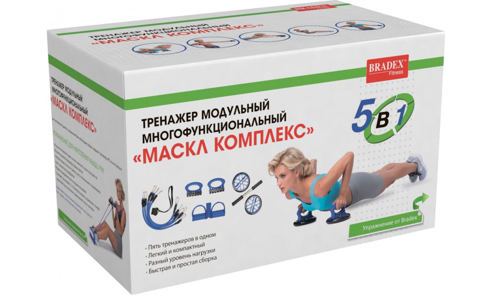 Представьте, что все основные тренажеры из спортзала могут уместиться на полке в шкафу, под кроватью или в рюкзаке. Похоже на сказку! Но с МАСКЛ КОМПЛЕКС – это реальность. С его помощью Вы сможете выполнять весь спектр упражнений, не посещая дорогие фитнес- центры. Благодаря модульному многофункциональному тренажёру МАСКЛ КОМПЛЕКС Вы сможете проводить комплексные тренировки, устанавливая при этом нагрузку, необходимую для Вашего уровня подготовки. Преимущества: • Пять тренажеров в одном и бесчисленное количество упражнений с их использованием • Легкий и компактный, поэтому Вы сможете взять его с собой в поездку • Возможность подобрать необходимый уровень нагрузки • Надежные и качественные материалы • Быстрая и простая сборка